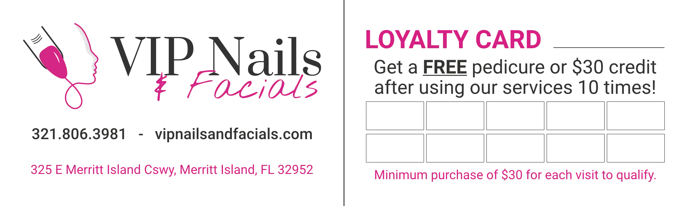 The VIP Nails and Facials Loyalty Card Program