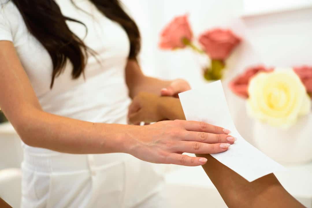 Using a soft wax is often referred to as strip waxing. To use soft wax, you spread a thin layer of the warm body wax on the skin, typically used on larger areas of the body, like arms, legs, chest, and back using a wooden stick or roller. Next, a strip of cloth is applied, then pulled off, which removes the unwanted hair.